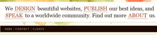 Tous ces superbes menus ont un inconvénient toutefois: leur esthétique est totalement ignorée des moteurs de recherche! Le design ne remplace pas le contenu textuel et ce n'est pas un hasard si les réalisations les plus impressionnantes se trouvent sur des sites de web design...